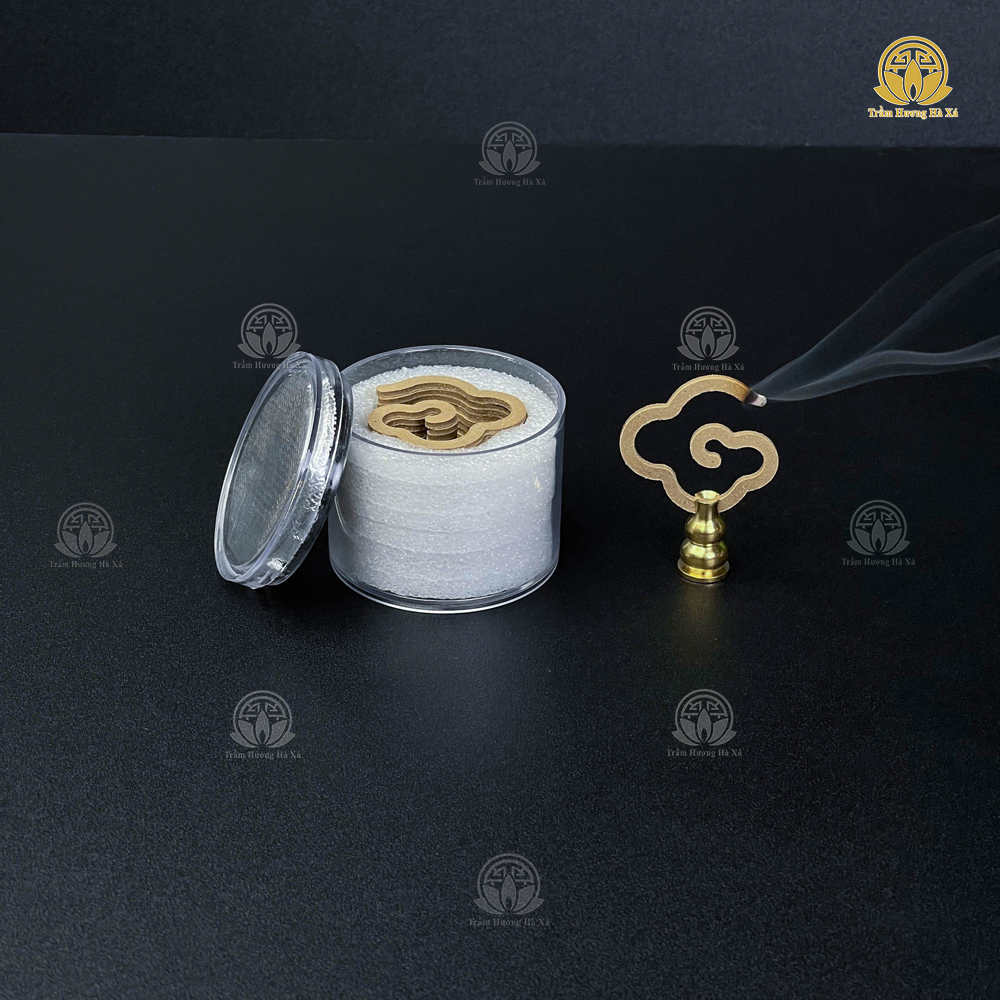 Đặc điểm: Nhang trầm hương vân mây của Trầm Hương Hà Xá được ép nén bằng máy thủy lực và không có sự can thiệp bởi bột keo. Vì thế hương thơm thuần ngọt thanh sâu rất dễ chịu, ngọt thanh mát và độ toả hương xa.
